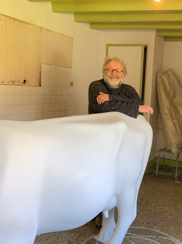 Cette Cow Parade met en scène mes vaches préférées. Des vaches ferroviaires immobiles, de la race de celles qui regardaient passer les trains. Elles ressemblent traits pour traits à leurs ancêtres, tout juste décorées de titres de chansons dont elles auraient pu être les inspiratrices. Il y a une placidité et une sagesse chez ces demoiselles qui me font comprendre pourquoi mes frères hindous ont pu les déclarer sacrées.